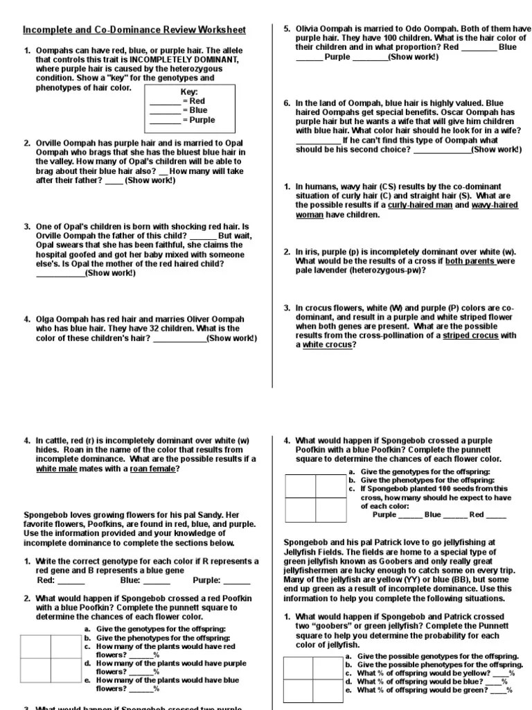 Codominance Punnett Square Worksheet : Student Copy Incomplete And Codominance Worksheet Answers 5 /. This video has a handout: He was the first to state the law of segregation.this law states that in … Fruit fly punnett square worksheet answers ngss life science 2018 11.10.2021 · mendel's law of segregation. Genetics packet ~ punnett square practice key basics 1.